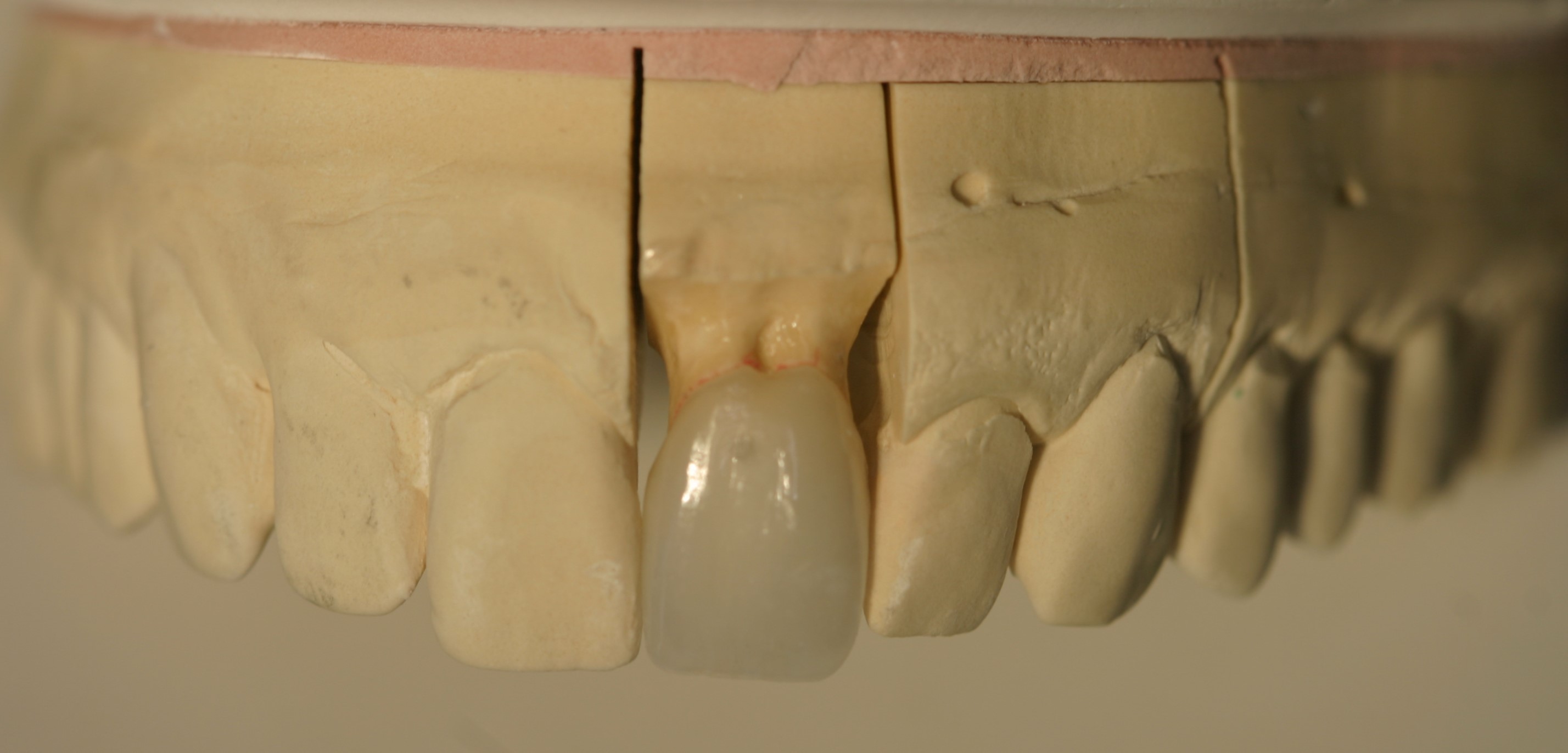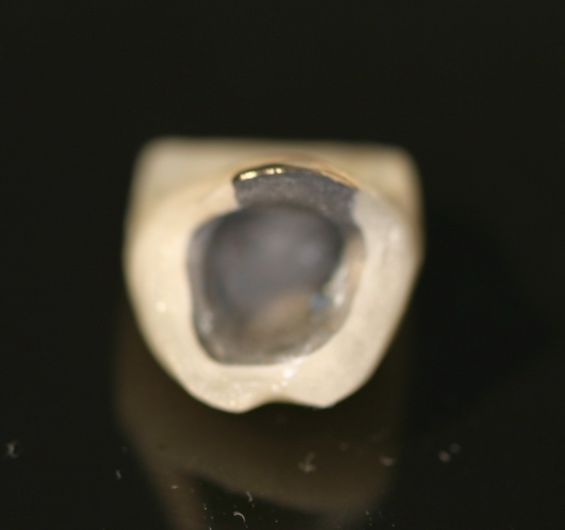 Custom made crown to allow cleaning of the defective tooth: